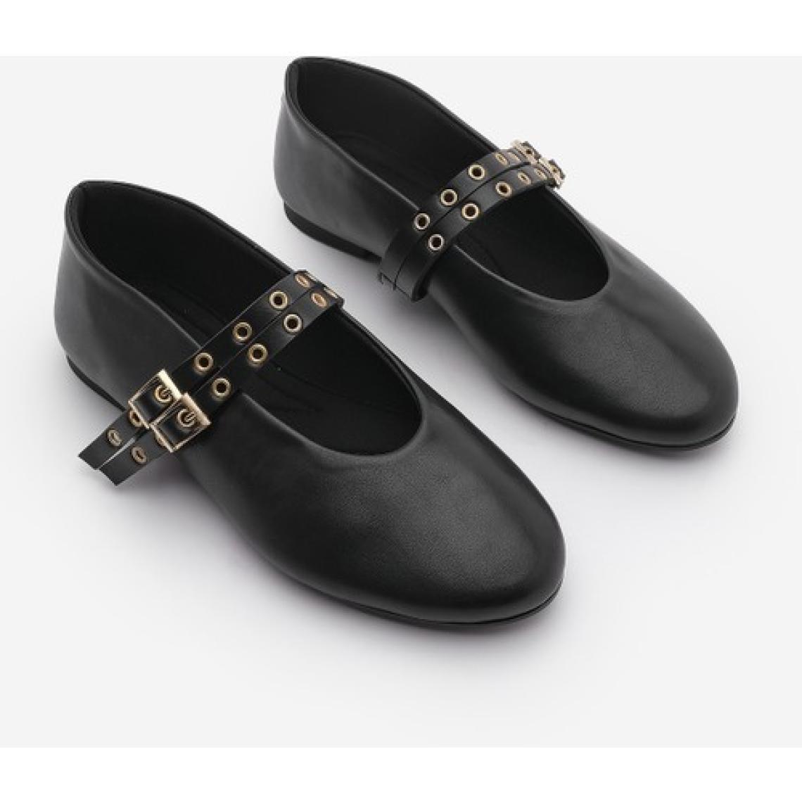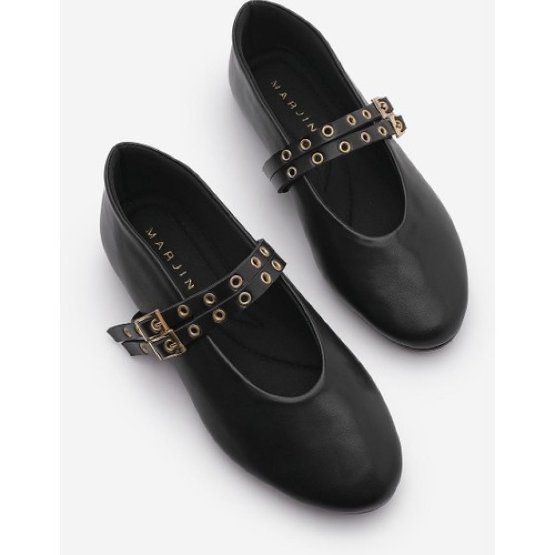 Marjin Kadın Çift Bantlı Zımbalı Günlük Babet Bekosa Siyah