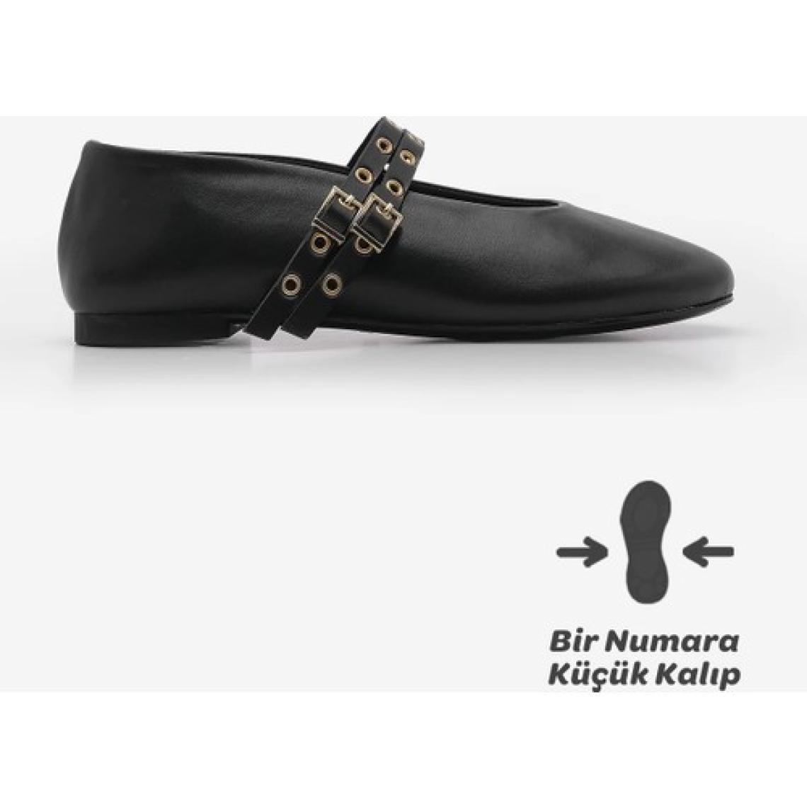 Kadın Çift Bantlı Zımbalı Günlük Babet Bekosa Siyah 36