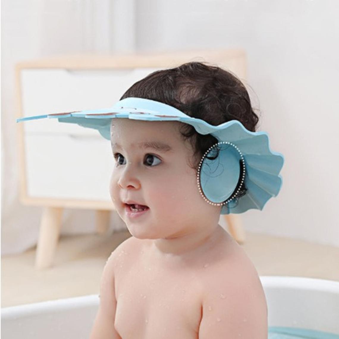 Rng Shopping Bebek Banyo Şapkası Düğmeli Kulaklıklı Mavi Bebek Yıkama Şapkası Bebek Duş Şapkası Şampuan Siperi