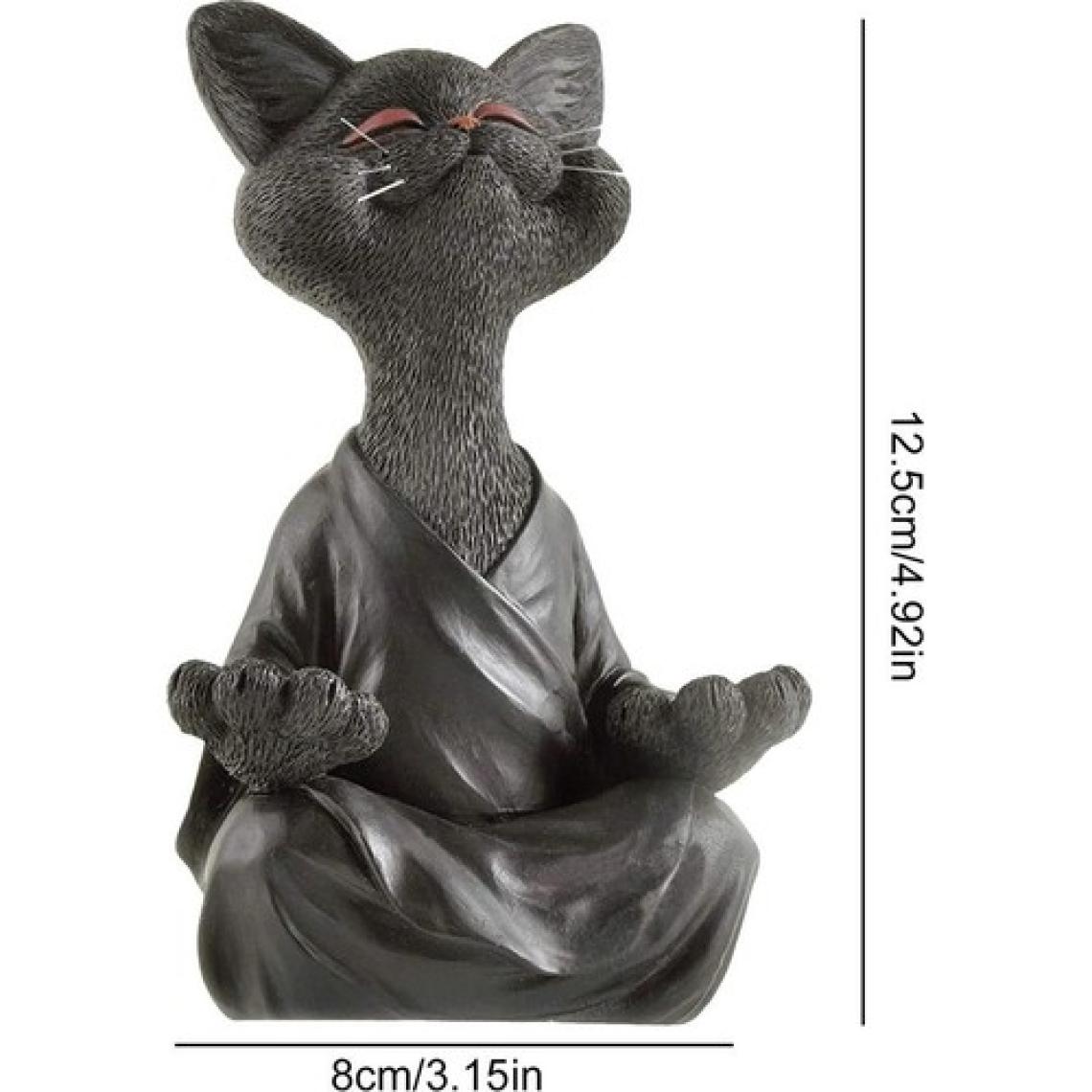 Dekoratif Yoga Yapan Kedi Biblo Meditasyon Kedi Heykeli Ev Dekoru (siyah)