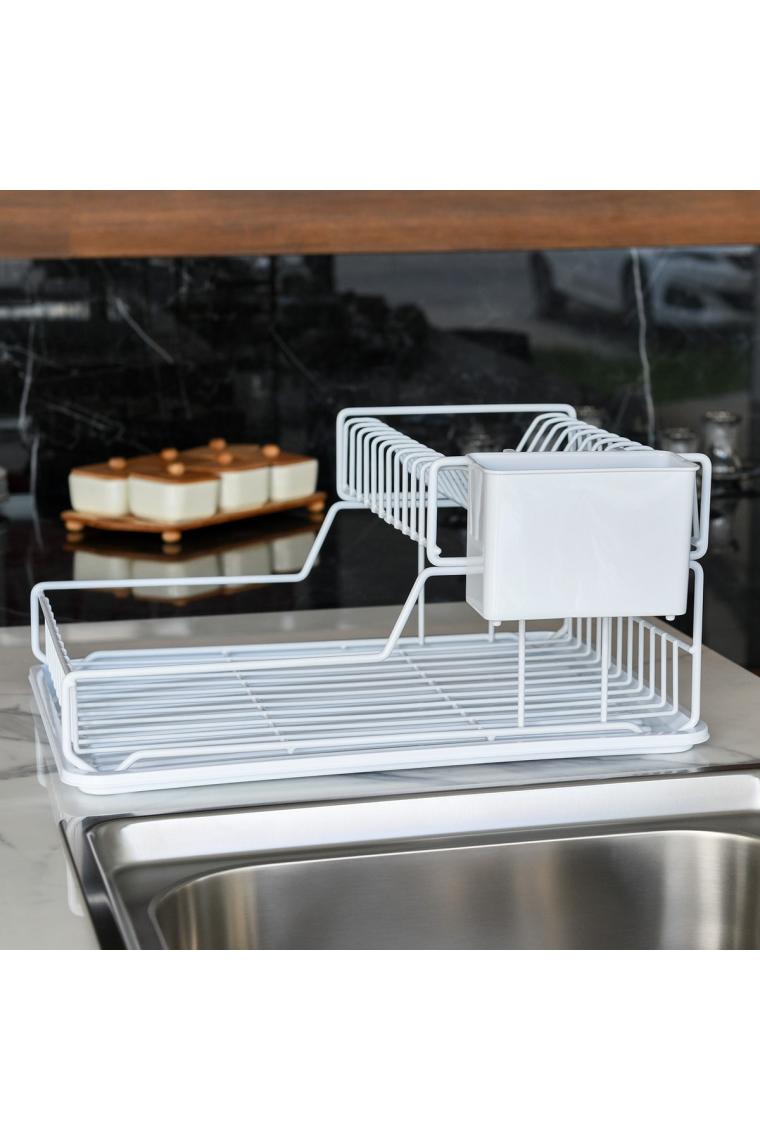 Beyaz Pe Kaplama Paslanmaz Iki Katlı Modüler Tabaklık/ Bulaşıklık