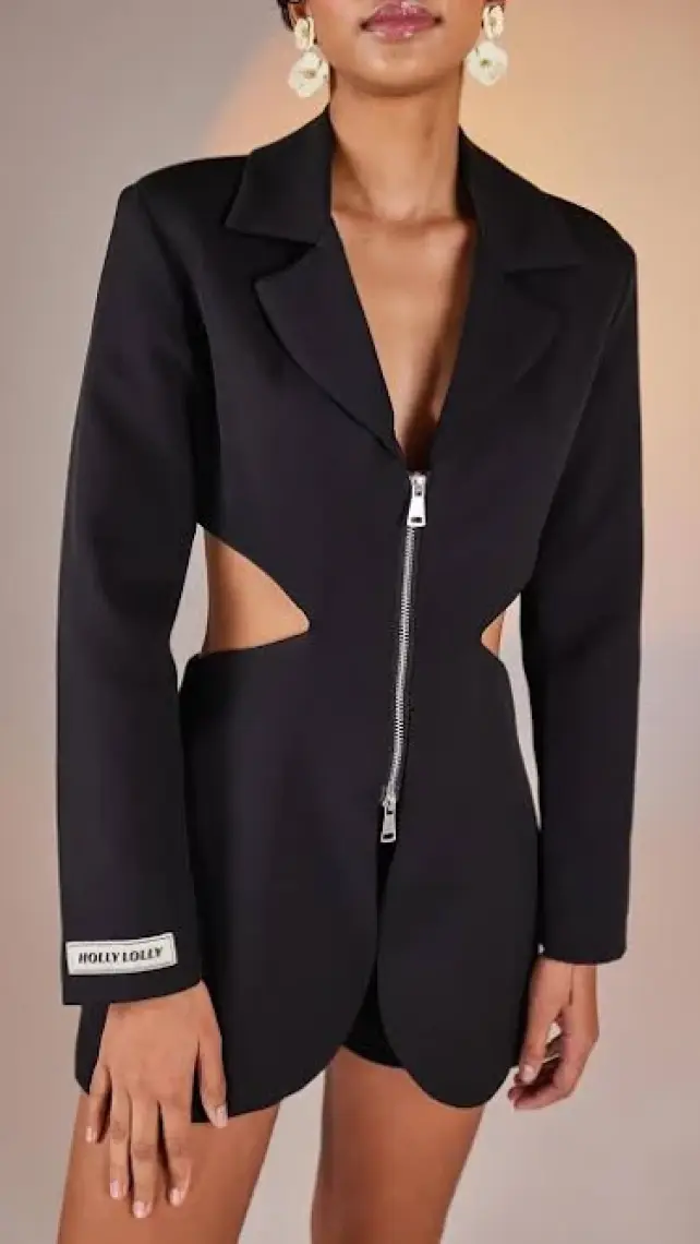 Bel Dekolteli Fermuarlı Voila Blazer Ceket Siyah