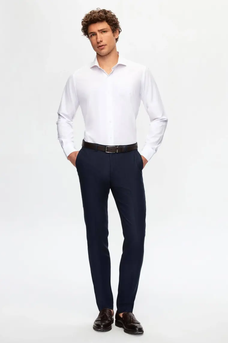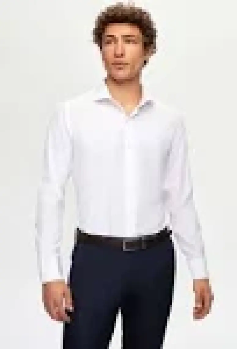 Slim Fit Beyaz Italyan Yaka Dar Kesim Klasik Kravatlık Uzun Kollu Kolay Ütülenebilir Nefes 2HF02ORT5185