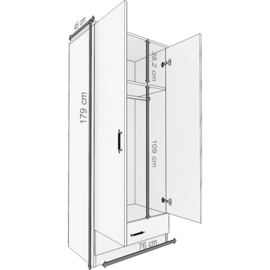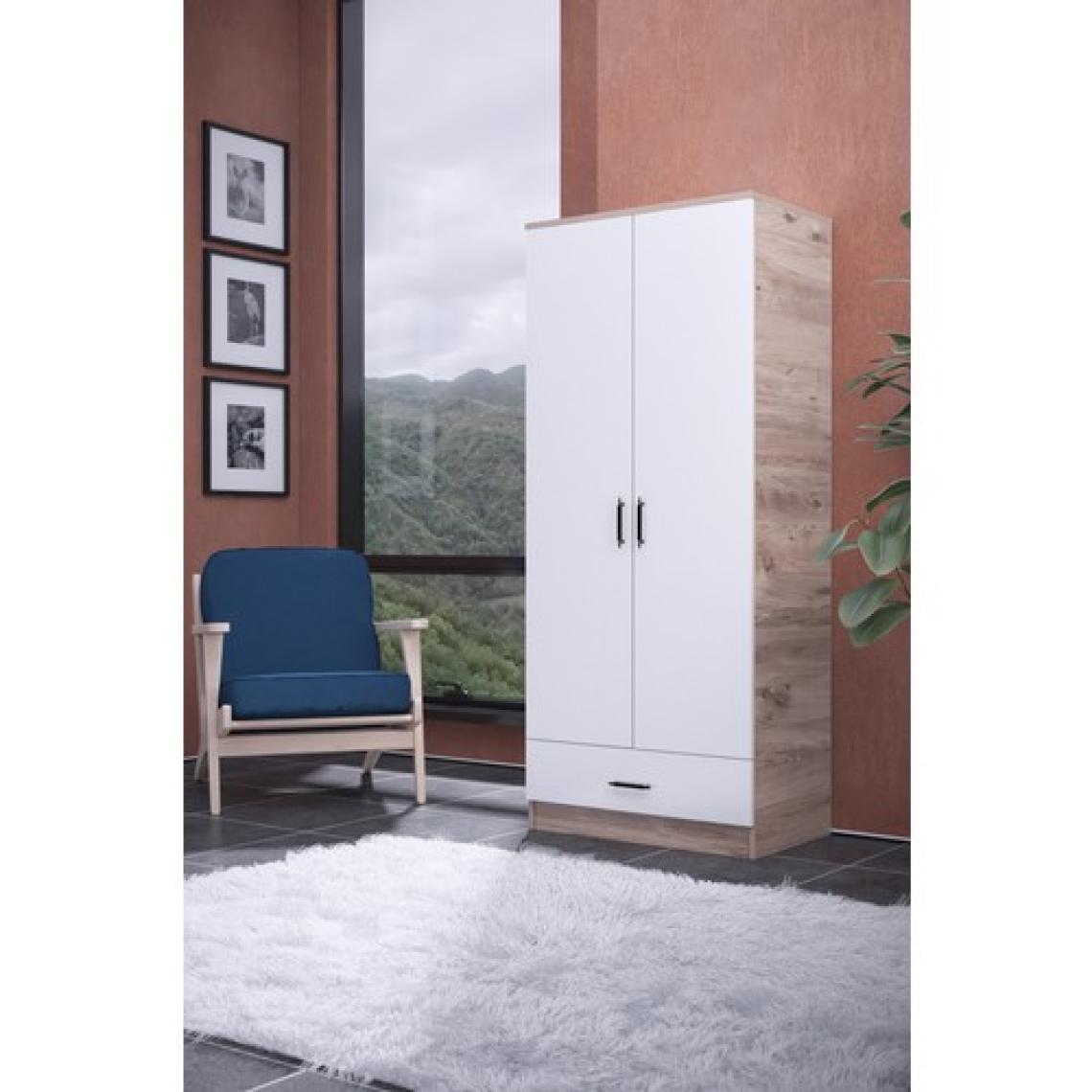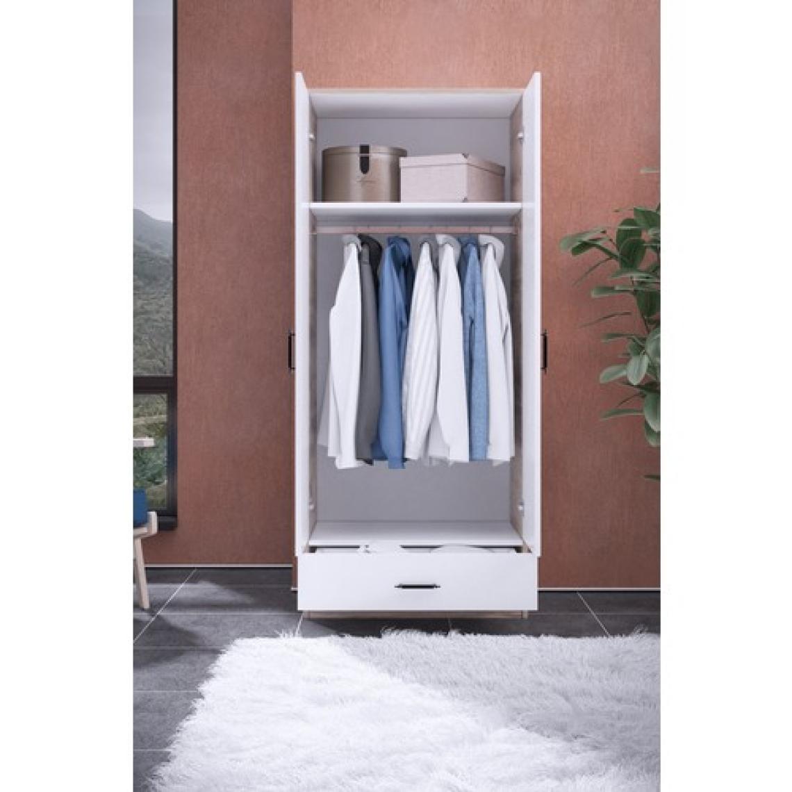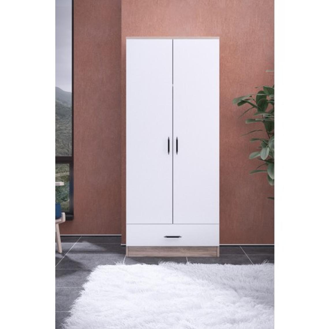Gubimo Abete 2 Kapılı 1 Çekmeceli Geniş Gardırop (Elbise Dolabı-Yüklük-Kiler) / Atlantik Çam-Beyaz