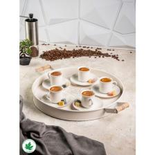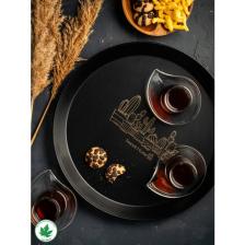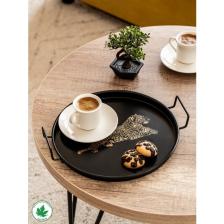 Lin Metal 24 cm Kulplu Metal Tepsi Yuvarlak Çay Tepsisi Sunum Tepsisi Metal Kulplu Kahve Tepsisi (Kaplan Baskılı)