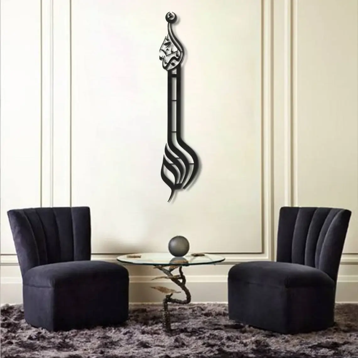 Allahu Ekber Yazılı Islami Metal Tablo - Siyah Renk 70x15 cm - Dini Duvar Tabloları - WAM057