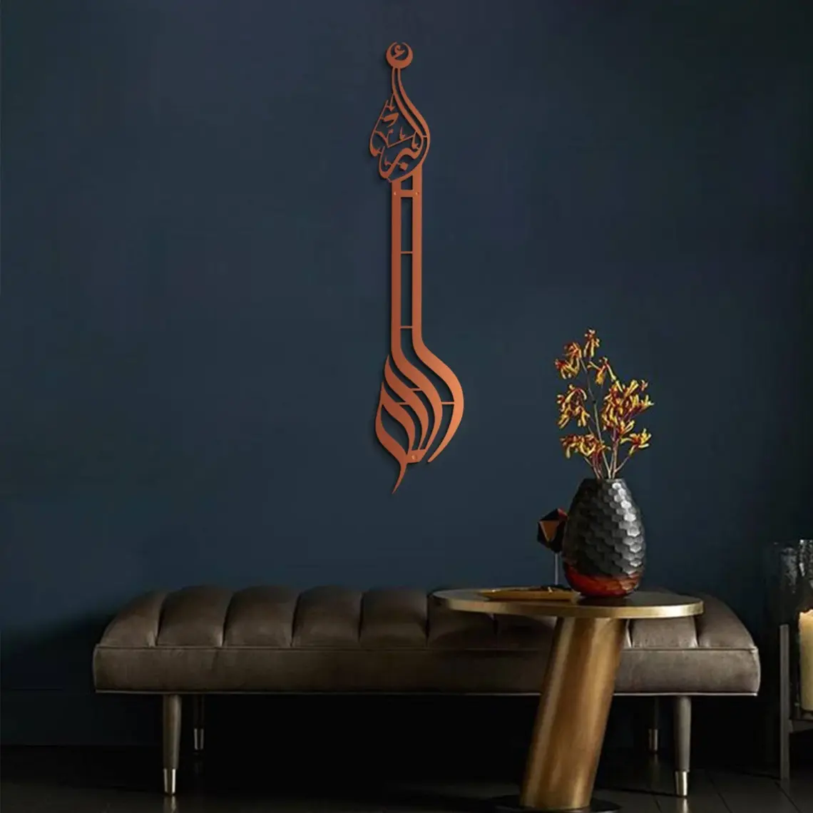 Wall Art İstanbul Allahu Ekber Yazılı Islami Metal Tablo - Siyah Renk 70x15 cm - Dini Duvar Tabloları - WAM057