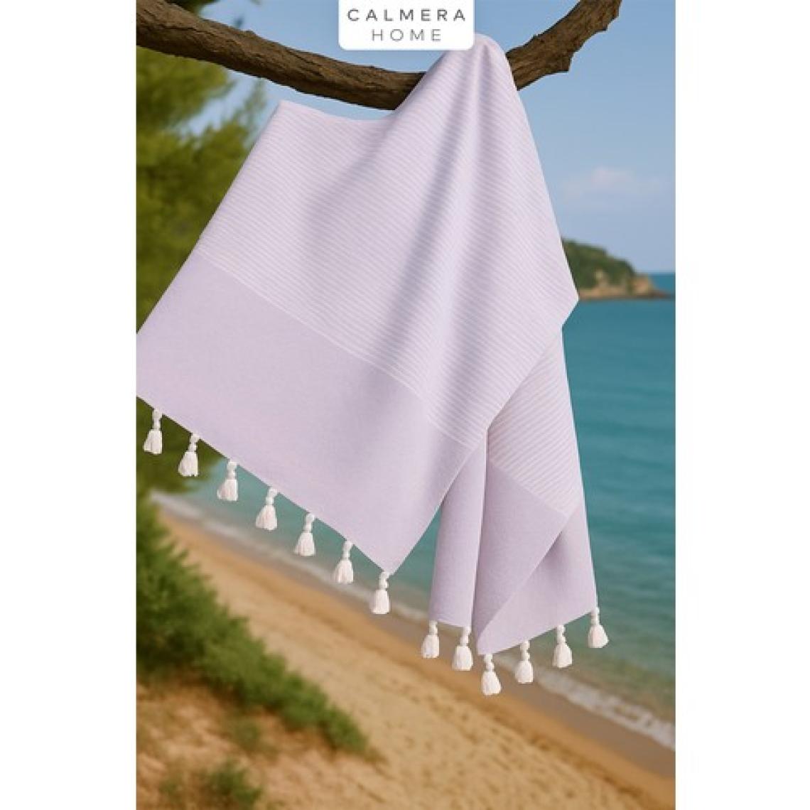 Calmera Home Çizgili Peştemal | Pamuk - Doğal Saçaklı | Plaj, Havuz, Spa, Hamam, Sauna, Spor, Seyahat Havlusu - Lila - 90 x 170 cm