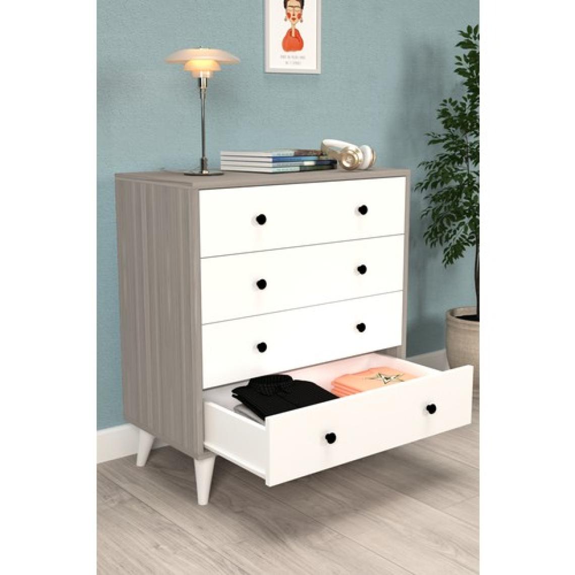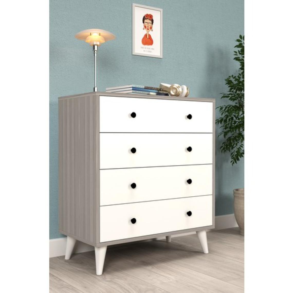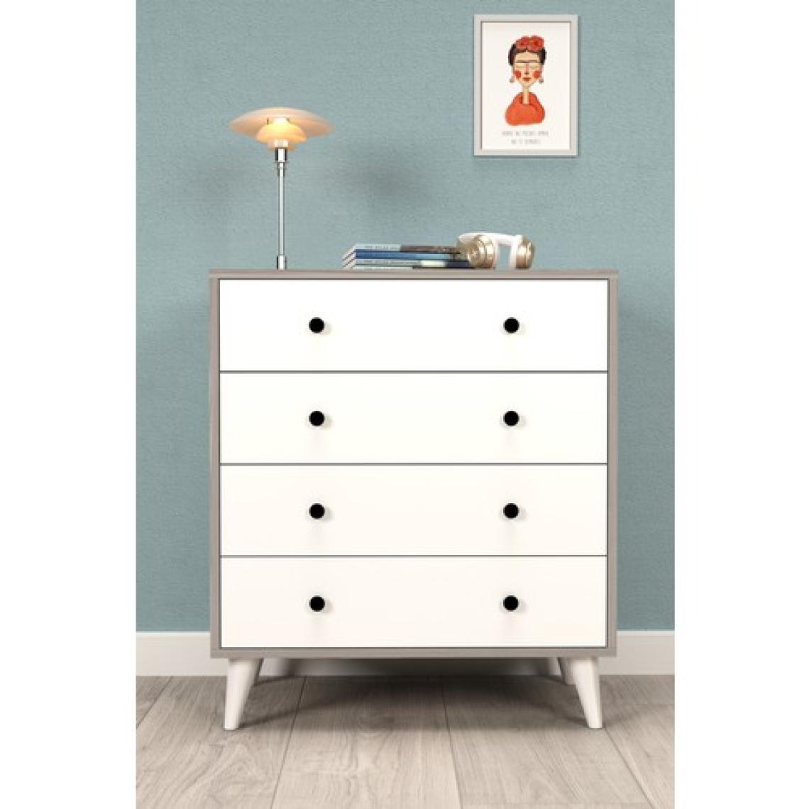 Şifonyer Cordoba Parlak Beyaz-Kahverengi 4 Çekmeceli Country Şifonyer Komodin Ahşap