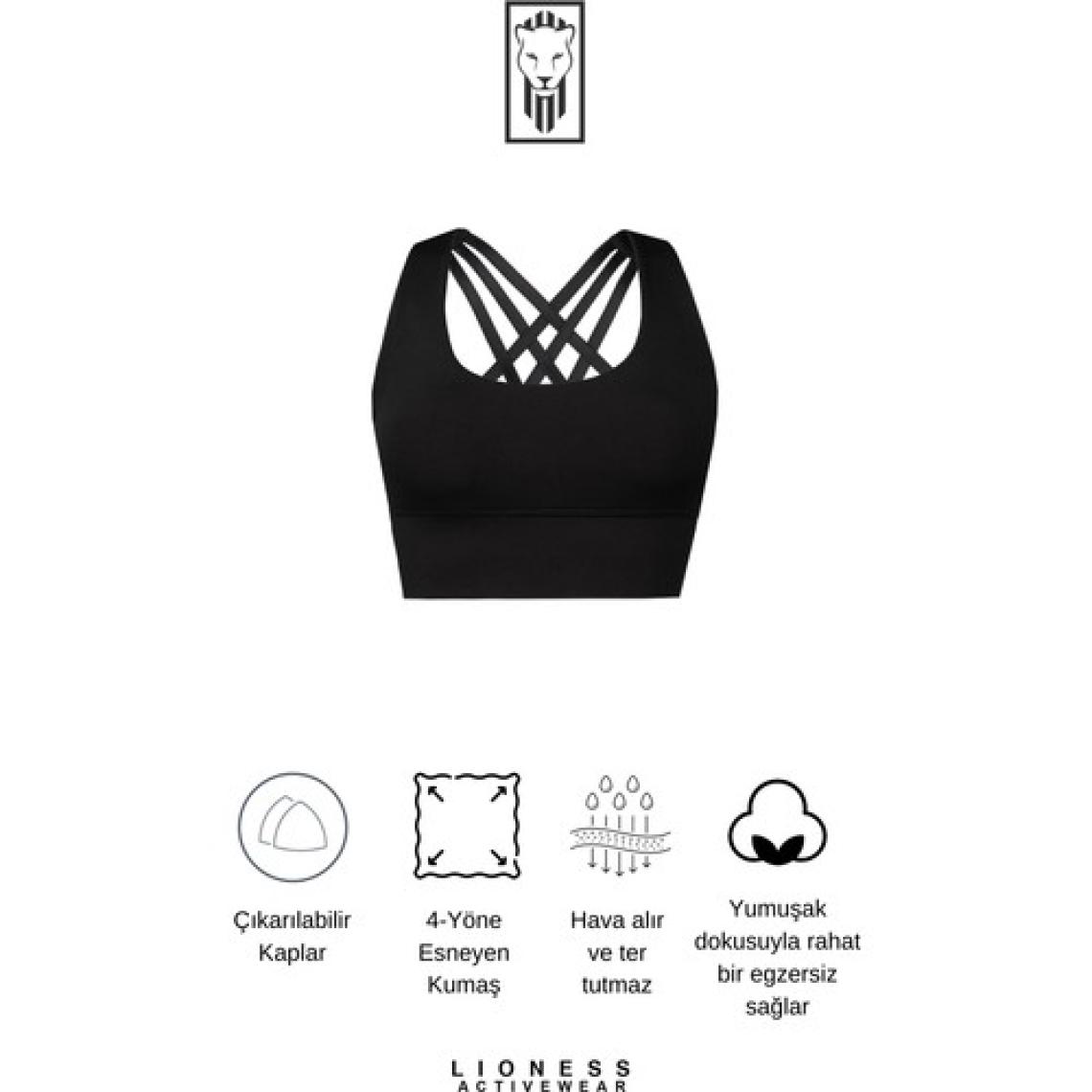 Siyah Yüksek Destekli Sırt Detaylı Kaplı Spor Sütyeni