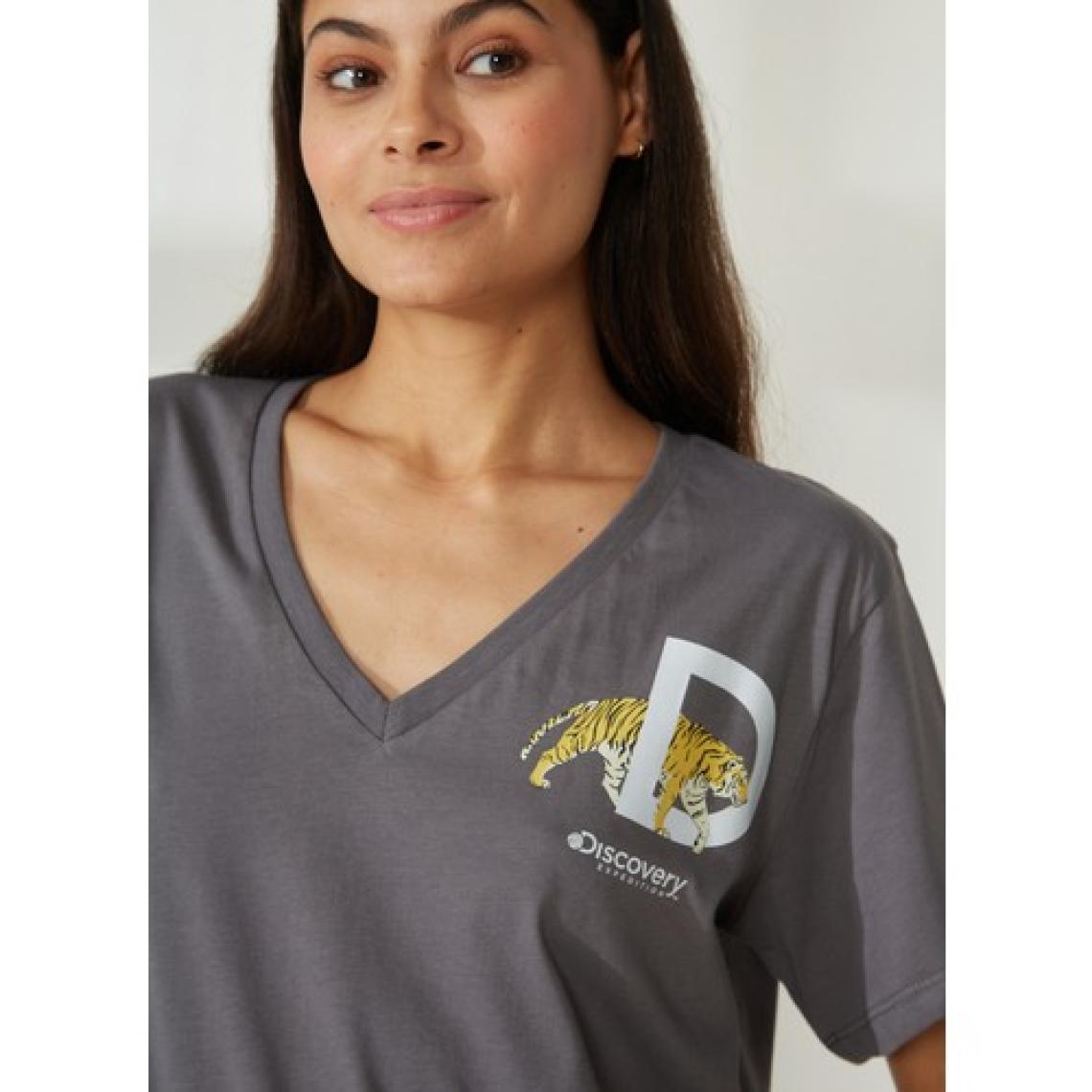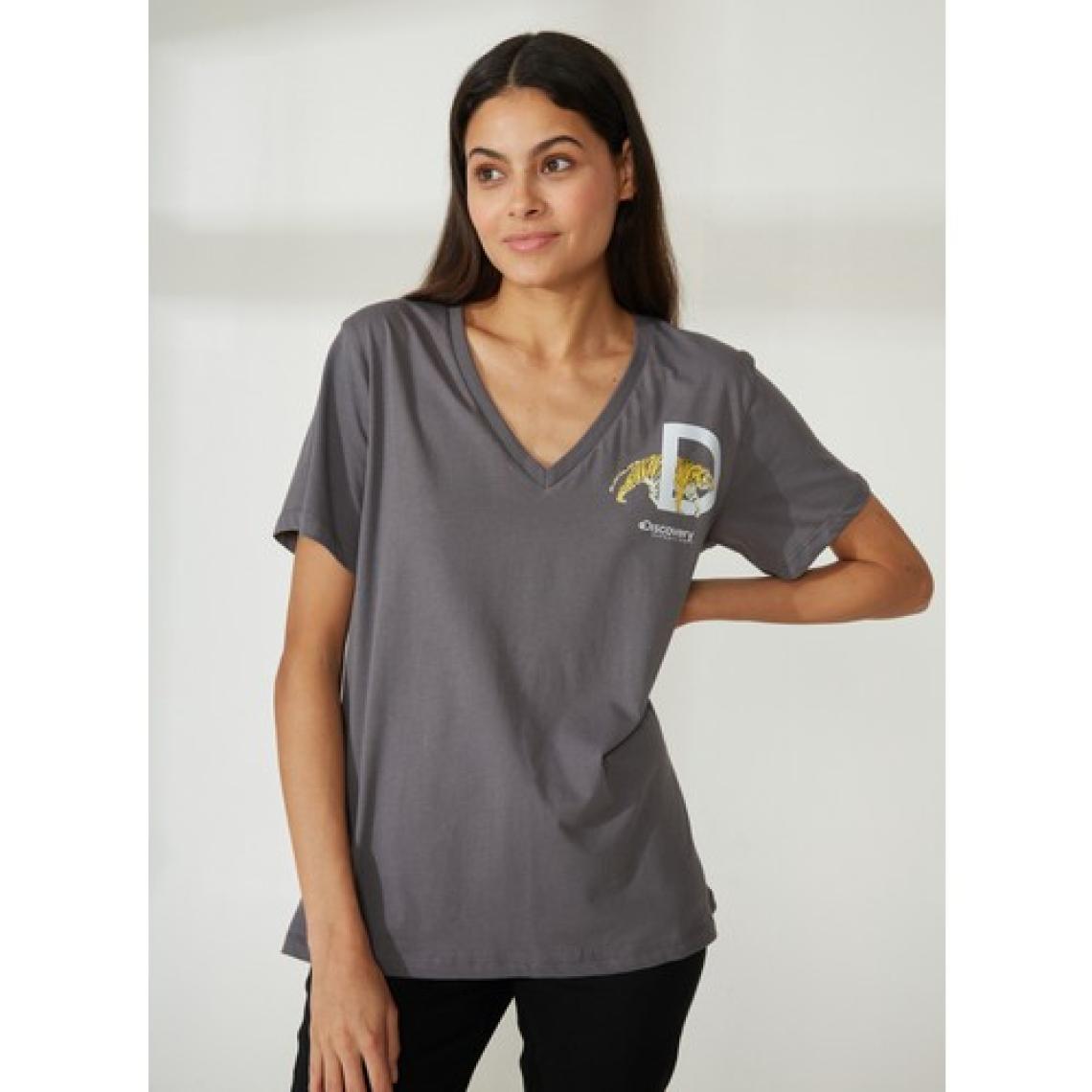 Discovery Expedition V Yaka Baskılı Antrasit Kadın T-Shirt W-MERCAN