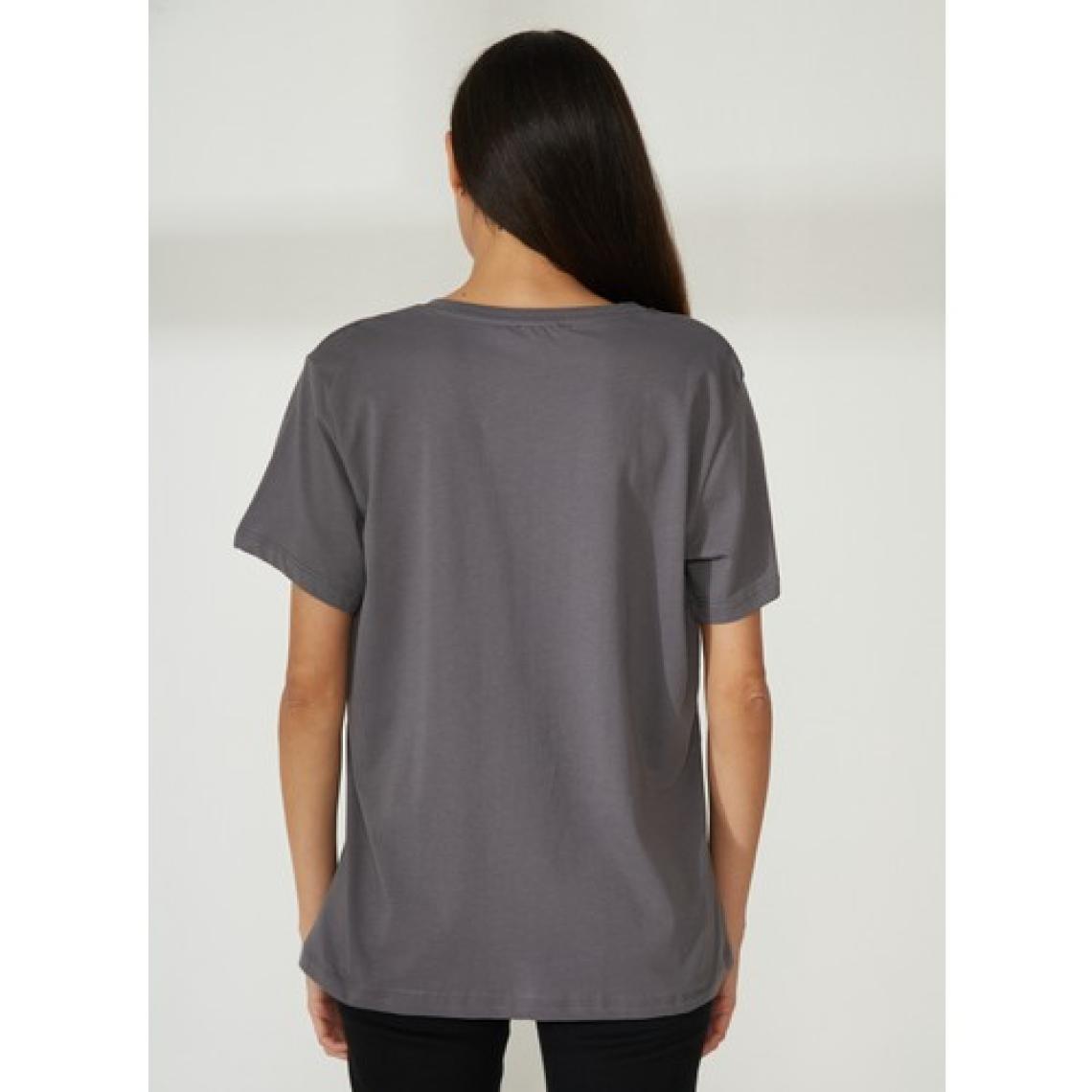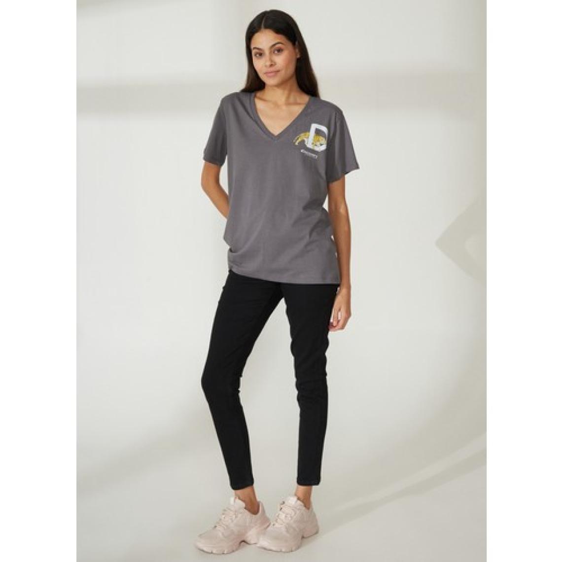 V Yaka Baskılı Antrasit Kadın T-Shirt W-MERCAN